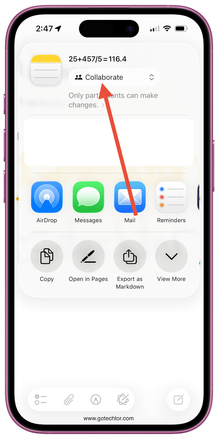 Sending a static note file to someone and waiting for edits is a slow way to collaborate. Instead, tap Share on any note, choose Collaborate, and send the invite.