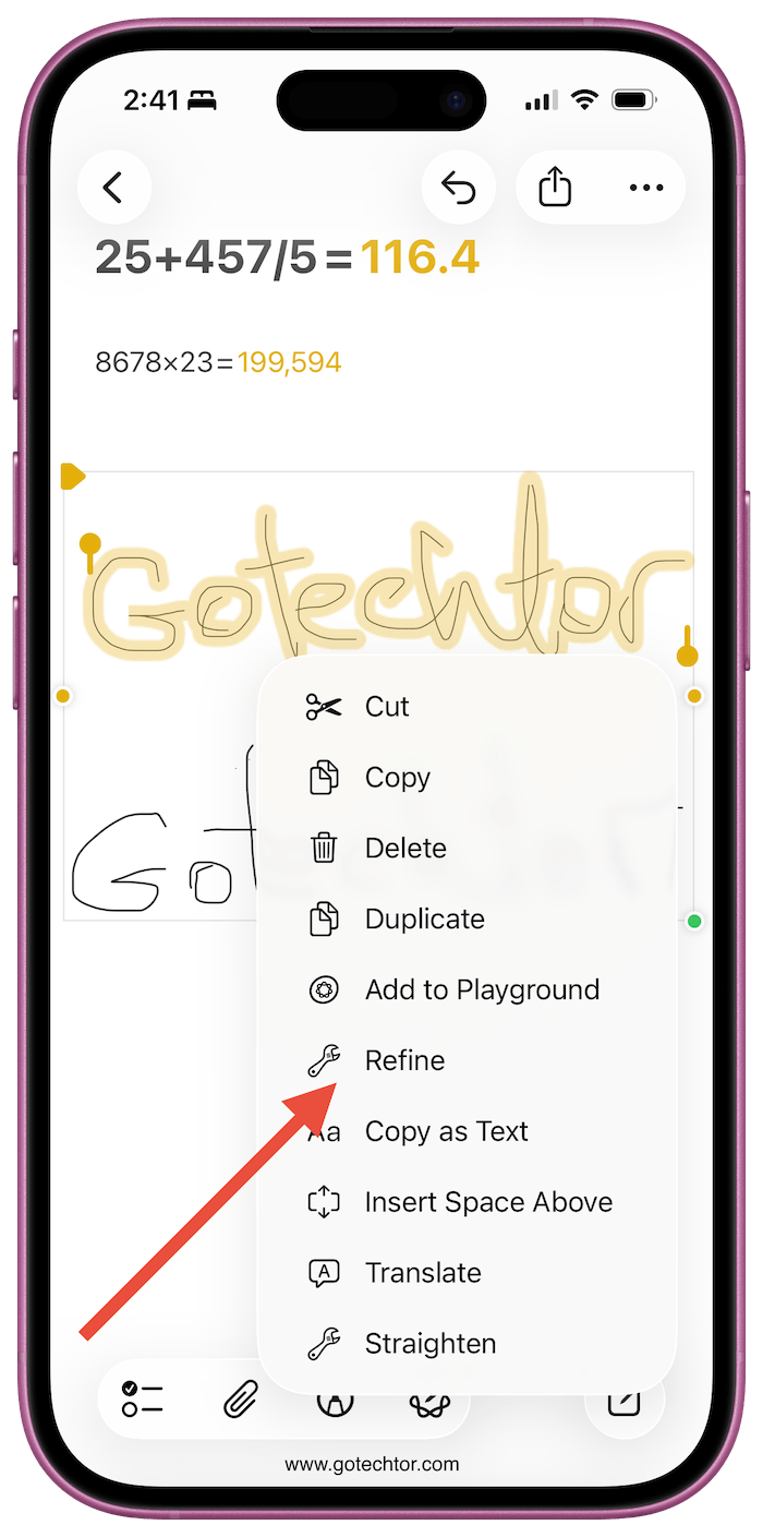 If your handwriting looks like a seismograph reading, tap and hold your scribbles and hit Refine to clean them up automatically.