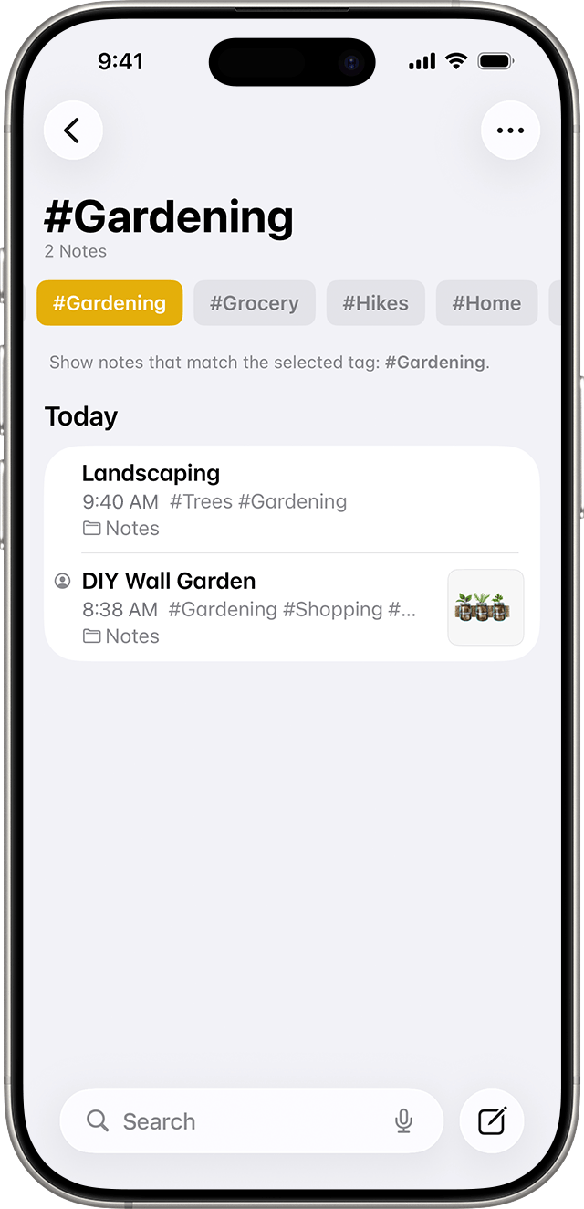 Got hundreds of notes piling up over the years? Hashtags inside notes group related content automatically, and you can pin your most-used notes to the top of the list.